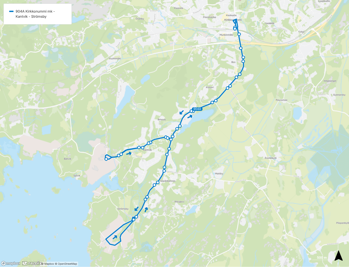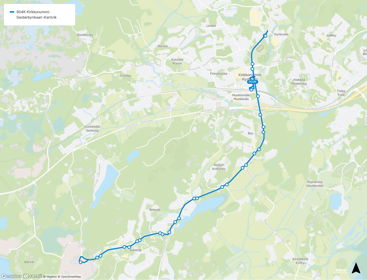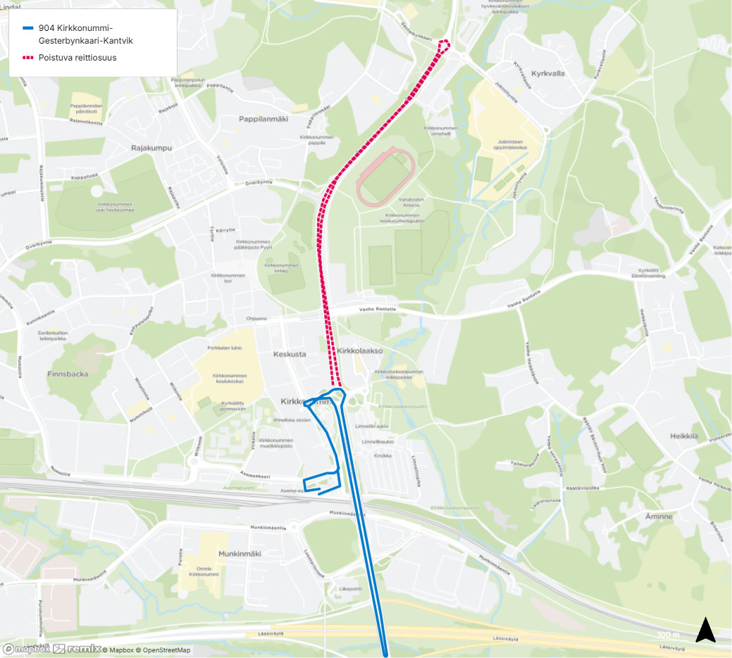 Linjan 904 uusi reitti 1.6.2026 alkaen